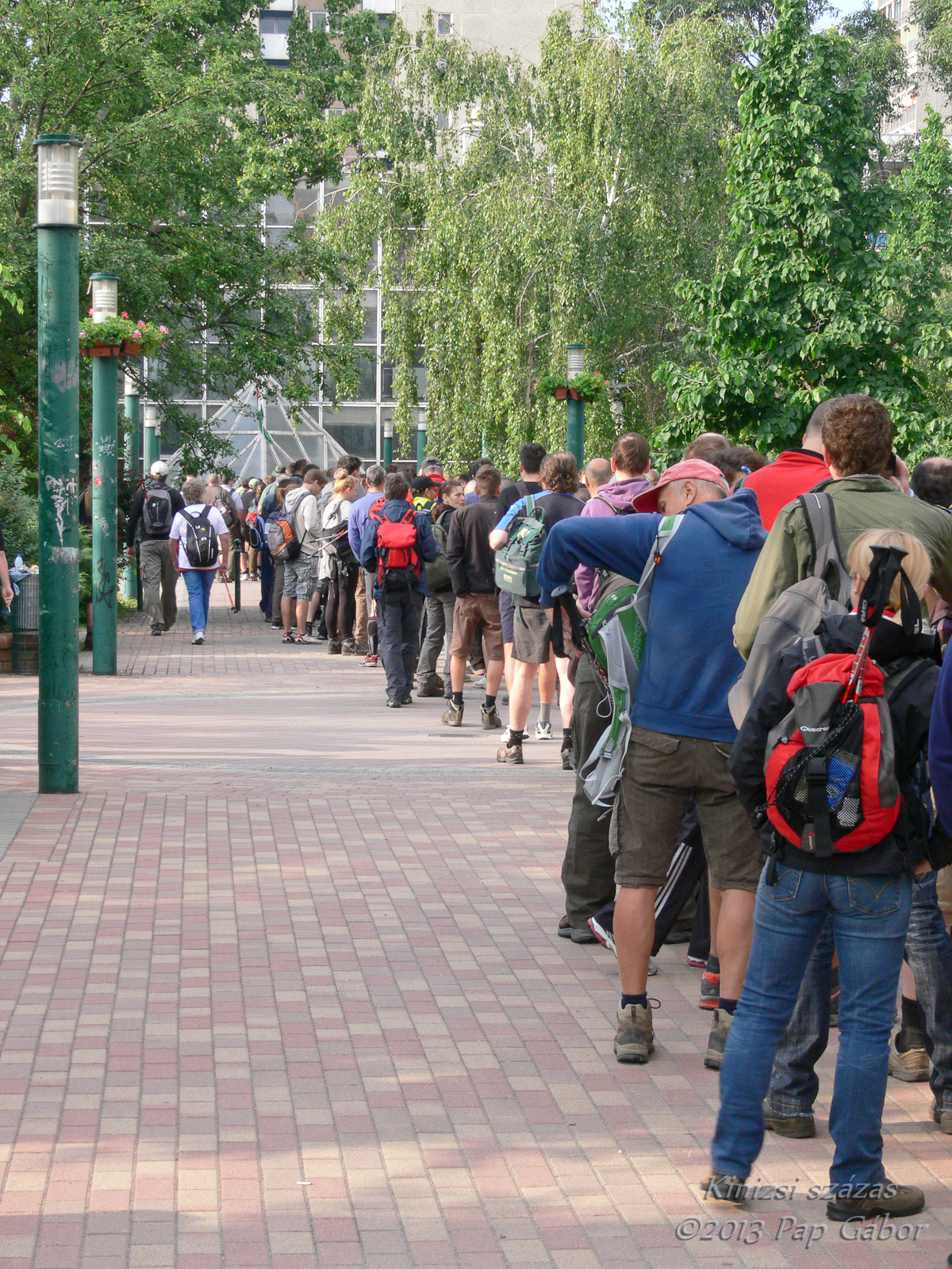 Egy péntek délutáni céges összejövetel után a hajnali vonattal utazok Pestre. A szénhidrát feltöltés megvolt. Feri biztosít róla, hogy nem lesz gond, tavaly fél nyolc felé már alig voltak a rajtban. Ehhez képest nem áll kisebb sor, mint mikor már fél hétkor itt voltam. Döcögős a haladás, csak közvetlen a bejárat előtt osztják a nevezési lapokat, kisebb kavarodást okozva.